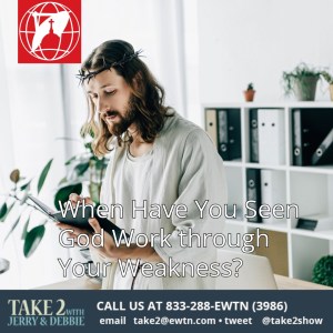 On Thursday’s Take 2 with Jerry & Debbie our topic will be When Have You Seen God Work through Your Weakness? Comment here with your take or call in during the show at Noon Eastern Time at 1-833-288-EWTN (3986).