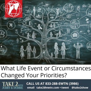 On Thursday’s Take 2 with Jerry & Debbie our topic will be What Life Event or Circumstances Changed Your Priorities? Comment here with your take or call in during the show at Noon Eastern Time at 1-833-288-EWTN (3986).