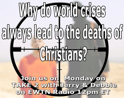 …the more they stay the same. From the time of Christ, Christians have been persecuted. Some people hate the truth. They hate those who represent the truth. And the underworld (i.e. Satan and his demons) hates the truth with a voracious passion. In our day, conflicts are erupting all over the world. It seems to us that wherever that happens, Christians are being tormented, persecuted, driven out, and even martyred for their faith. On Monday, we’ll take up this topic – with the usual help of your takes. Join us for “Christians In the Crosshairs.”