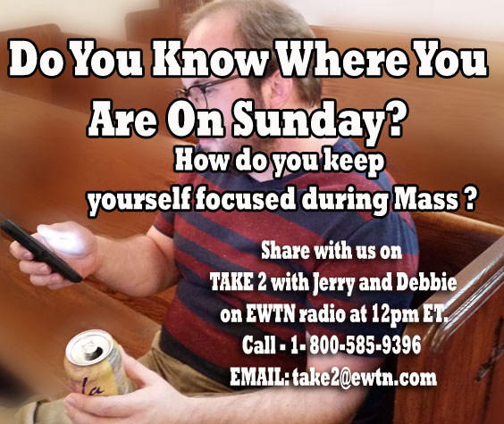 Hmmm…strange question, huh? You could be anywhere on a particular Sunday. But, here’s the deal for Thursday’s show. If you attend Mass on Sunday (or Saturday evening), do you realize that you are at one and the same time at the foot of Calvary and partaking of the wedding feast of the Lamb in Heaven? Mass is THAT important. We have to know where we are and what we’re doing when we assist at Mass. (By the way, “assisting” at Mass doesn’t necessarily mean being involved in some sort of ministry, such as lector or Extraordinary Ministry of Holy Communion. It means actively participating in the prayer and worship of God being offered by the Church). We can’t just punch the clock and get it over with. So, call with your takes about how you stay focused at Mass, how you prepare for Mass, how you keep from having your mind wander to all sorts of things but what is going on right in front of you. Can’t wait to talk with you on Thursday!