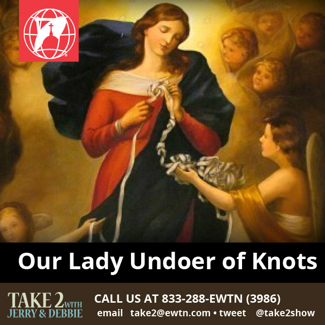 It’s our first part two show of the new year! See yesterday’s show description for details. The calls, emails and social media comments were so numerous on Wednesday, that you voted for a second part on the topic of Our Lady, Undoer of Knots. If you were waiting to get on the air at the end of the show, you’ll be moved to the front of the line on Thursday.