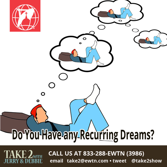 Recurring dreams happen over and over again with the same vivid imagery and intensity. Do you have any recurring dreams? Share with us on the next Take 2 with Jerry and Debbie by calling, 1-833-288-3986