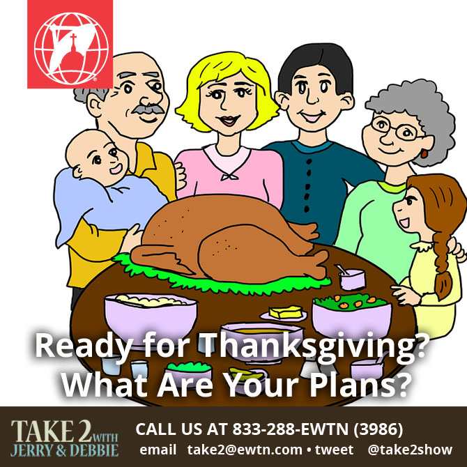 Are You Ready For Thanksgiving? November 22, 2021 by debbiegeorgianni Leave a comment EWTN Catholic Radio · Take 2 with Jerry & Debbie 11/22/21Please share with us what you have planned for Thanksgiving. Call in! 1-833-288-3986 Share this:TweetMore Email a link to a friend (Opens in new window) Email Like Loading... Related