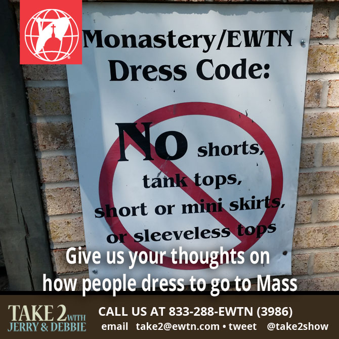 Our next show may be a first – a part two on a Monday. We can’t remember when you’ve ever called for a part two following a Friday program. But, it’s your show, and you’ve asked for exactly that. We’ll field more of your takes on what we wear to Mass on Monday.