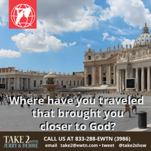 Our travels sometimes reveal God to us in ways we never noticed before. Whether you have been to Rome or somewhere else and your faith grew or saw God, you can share those adventures on the next Take 2 with Jerry & Debbie. 1-833-288-3986
