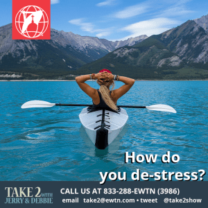 How do you de-stress? What tips or tricks would like to pass along to help others struggling to do so? Share on Take 2 with Jerry & Debbie 833-288-3986