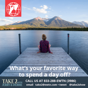 What’s your favorite way to spend a day off? June 26, 2023 by EWTN Catholic Radio Leave a comment EWTN Catholic Radio · Take 2 with Jerry & Debbie -What’s your favorite way to spend a day off? -06/27/23 What’s your favorite way to spend a day off? Tell us more on the next Take 2 with Jerry & Debbie 833-288-3986 Share this:TweetMore Click to email a link to a friend (Opens in new window) Email Like Loading... Related