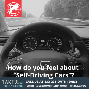 “Self-Driving Cars” August 10, 2023 by EWTN Catholic Radio 1 Comment How do you feel about “Self-Driving Cars”? That’s our topic on the next Take 2 with Jerry & Debbie. 833-288-3986 EWTN Catholic Radio · Take 2 with Jerry & Debbie -Self-Driving Cars-08/11/23 Share this:TweetMore Click to email a link to a friend (Opens in new window) Email Like Loading... Related
