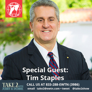 Tim Staples is a prominent Catholic apologist, author, and dynamic speaker known for his fervent commitment to defending and explaining the teachings of the Catholic faith. With a compelling blend of theological expertise and engaging communication skills, Tim has become a sought-after figure in the realm of apologetics. His journey from a Baptist upbringing to becoming a passionate advocate for Catholicism gives him a unique perspective on religious conversion and the power of informed faith. Through his books, presentations, and media appearances, Tim Staples continues to inspire and educate audiences worldwide, encouraging them to delve deeper into their beliefs and engage in meaningful dialogue about matters of faith and joins Take 2 with Jerry & Debbie.