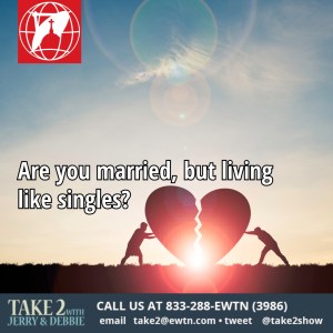 Married, but living like singles March 5, 2024 by EWTN Catholic Radio Leave a comment EWTN Catholic Radio · Take 2 With Jerry And Debbie 03/06/24 – Are You Married, But Living Like Singles? Are you married, but living like singles? Share on Take 2 with Jerry & Debbie 833-288-3986 Share this:TweetMore Click to email a link to a friend (Opens in new window) Email Like Loading... Related