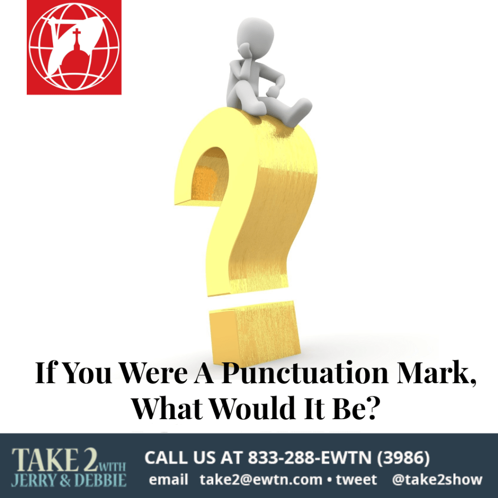 On tomorrow’s Take 2 With Jerry & Debbie: If You Were A Punctuation Mark, What Would It Be? Comment here or call 1-833-288-3986.