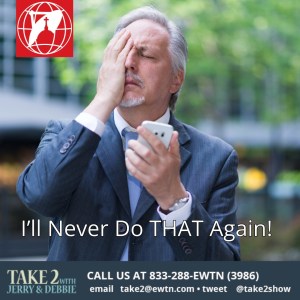 On Thursday’s Take 2 with Jerry & Debbie our topic will be I’ll Never Do THAT Again! Comment here with your take or call in during the show at Noon Eastern Time at 1-833-288-EWTN (3986).