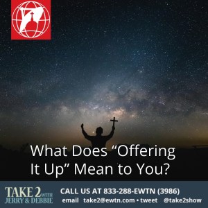 On Thursday’s Take 2 with Jerry & Debbie our topic will be On Thursday’s Take 2 with Jerry & Debbie our topic will be What Does “Offering It Up” Mean to You? Comment here with your take or call in during the show at Noon Eastern Time at 1-833-288-EWTN (3986).