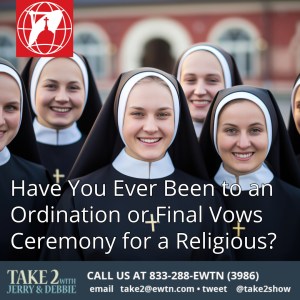 On Thursday’s Take 2 with Jerry & Debbie our topic will be Have You Ever Been to an Ordination or Final Vows Ceremony for a Religious? Comment here with your take or call in during the show at Noon Eastern Time at 1-833-288-EWTN (3986).