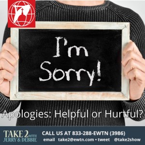 On Tuesday’s Take 2 with Jerry & Debbie our topic will be Apologies: Helpful or Hurtful? Comment here with your take or call in during the show at Noon Eastern Time at 1-833-288-EWTN (3986).